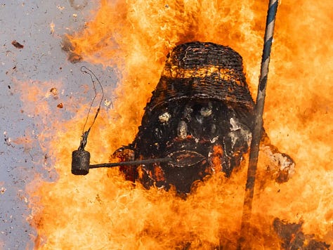 The Swiss still believe in it, and it is a hot topic on the day. There is live TV coverage. Celebrities are interviewed as the pyre burns in the background.