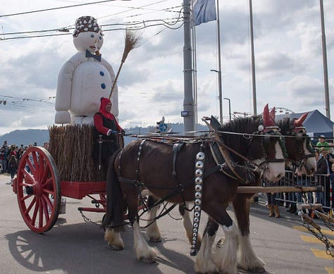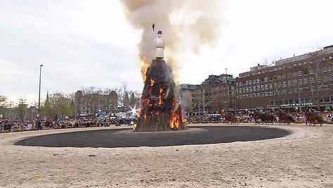 To celebrate a year on Substack (thank you, dear readers, you’ve somehow validated my rambling semi-coherent thoughts!), I decided to write about something very local and very traditional - a festival that is held in a square in the middle of the city of Zurich, usually on the third Monday in April, but the exact date can shift to avoid conflicts with Easter or school holidays. Hey, you have to let everyone join the party!